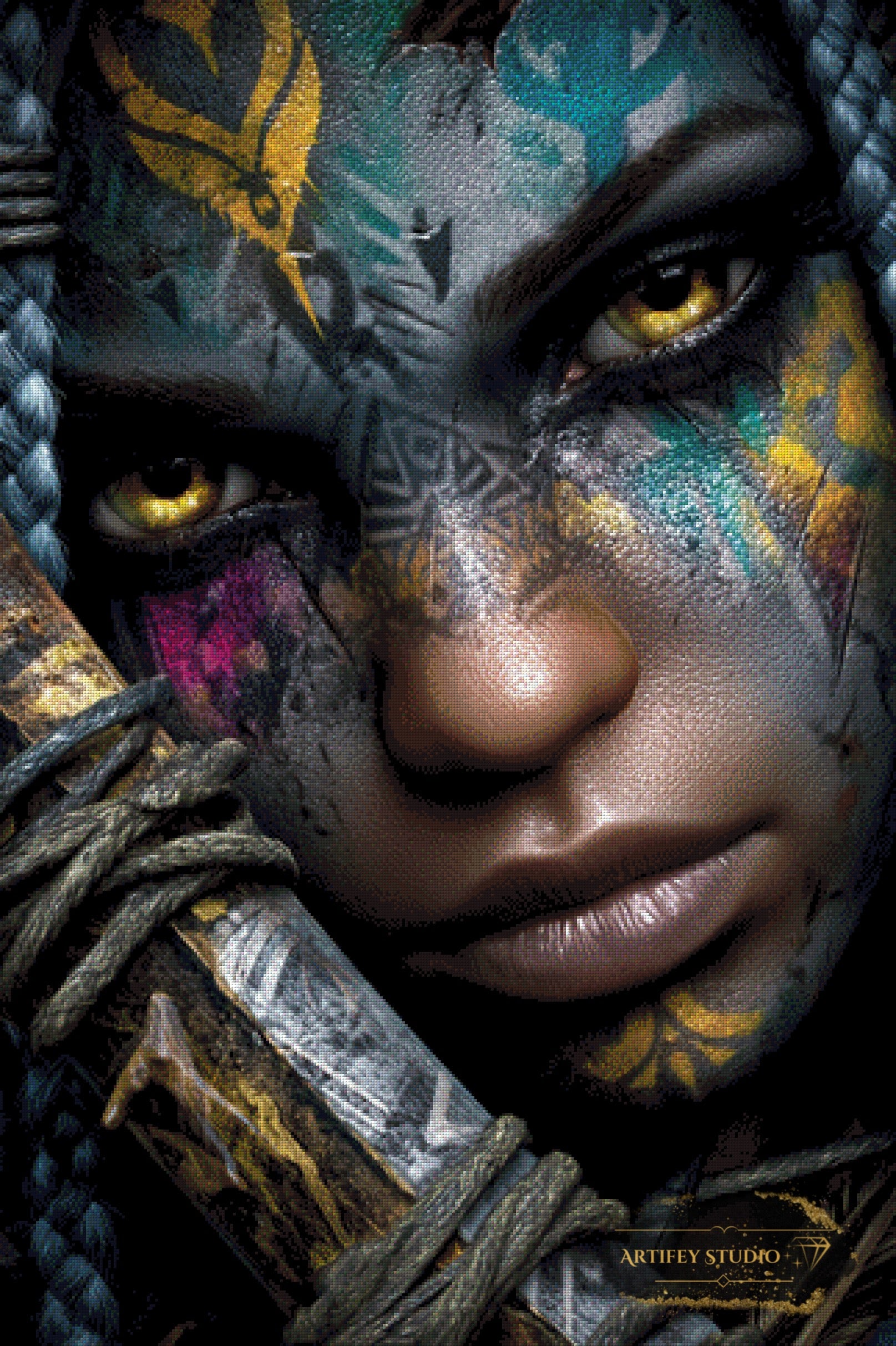 Mit diesem Diamond Painting Set gestaltest du ein detailreiches Kunstwerk in brillanten Farben. Das gezeigte Bild zeigt bereits die fertige, gepixelte Vorlage – so weißt du genau, wie dein Motiv später wirkt.