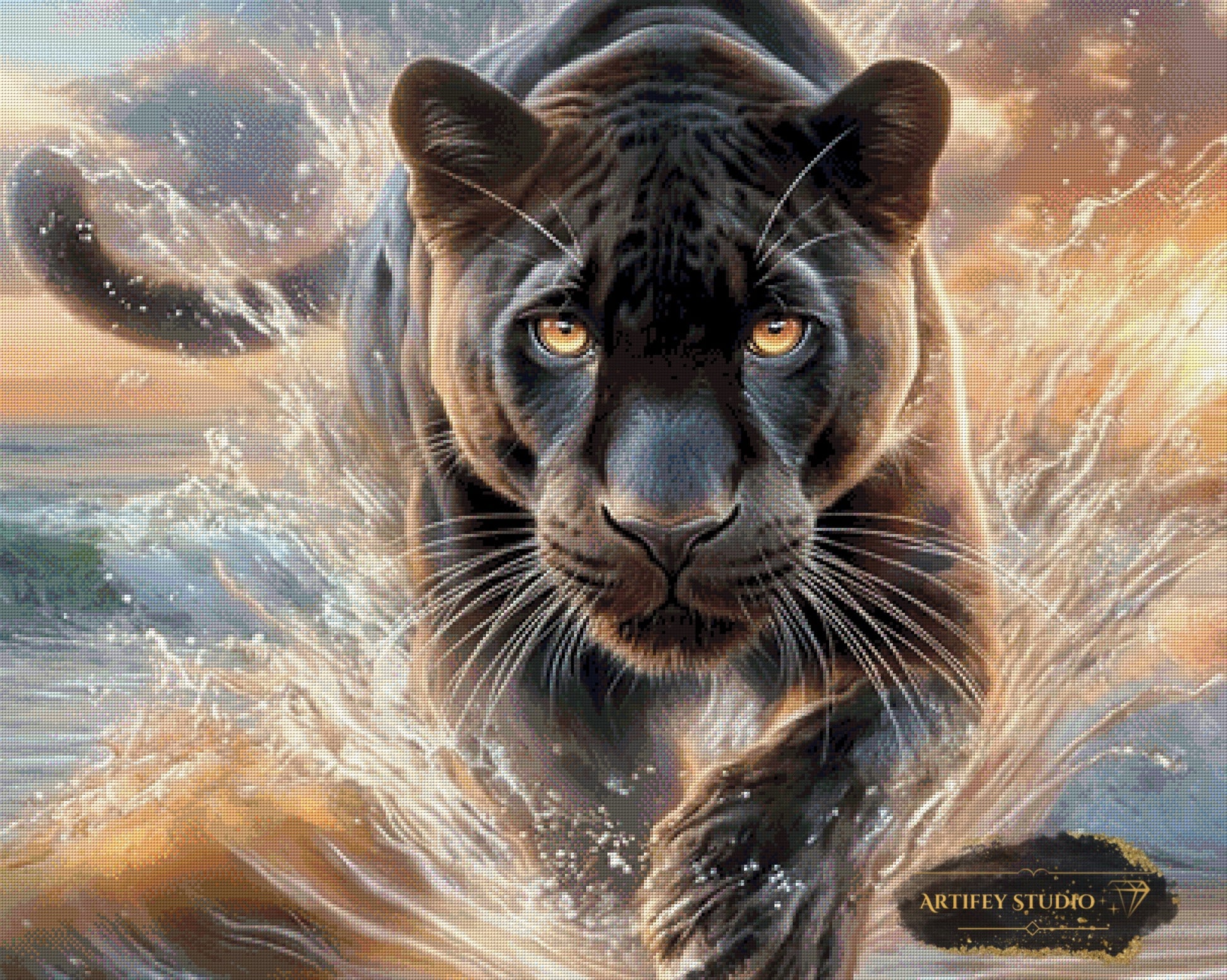 Mit diesem Diamond Painting Set gestaltest du ein detailreiches Kunstwerk in brillanten Farben. Das gezeigte Bild zeigt bereits die fertige, gepixelte Vorlage – so weißt du genau, wie dein Motiv später wirkt.