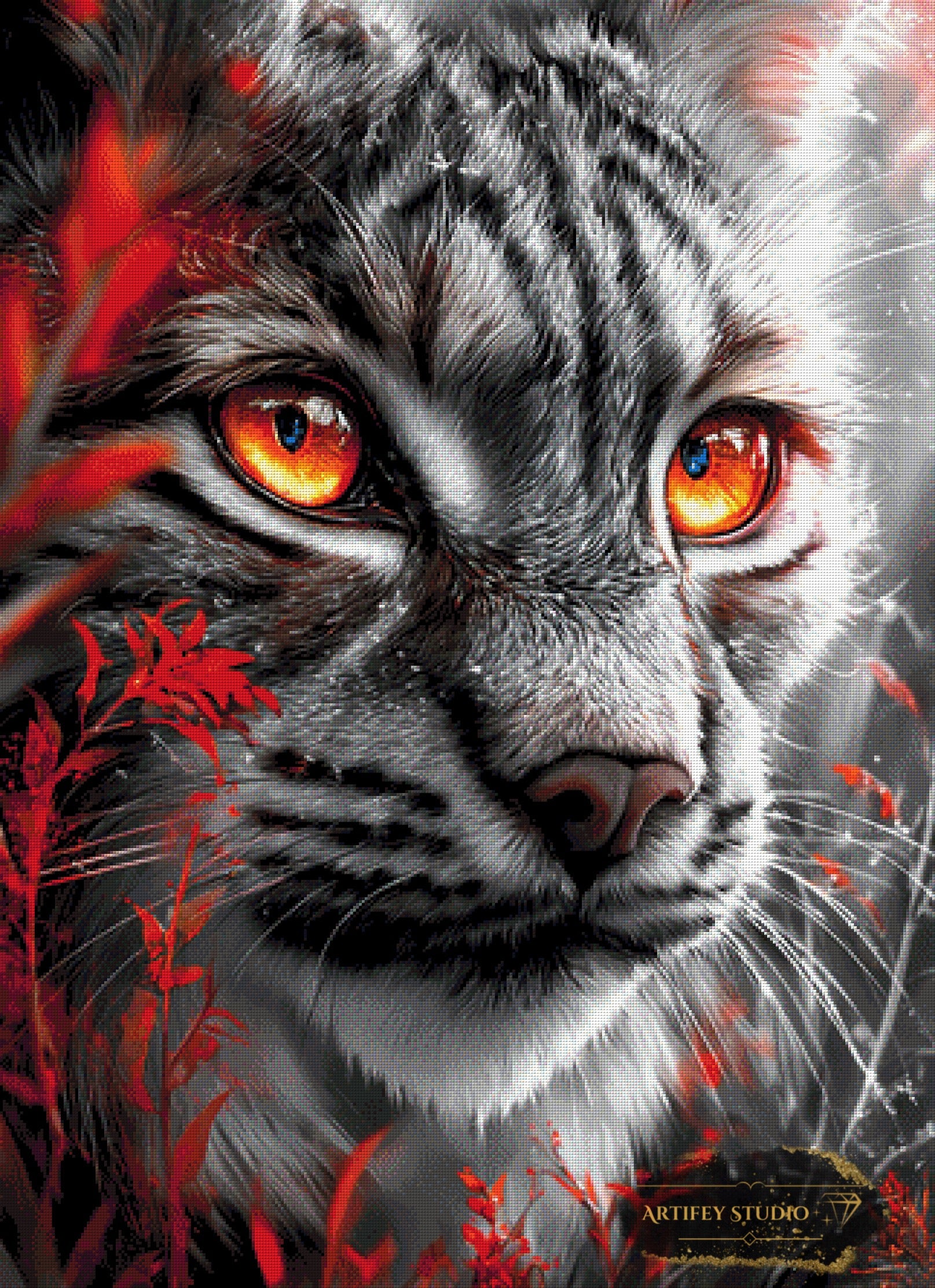 Mit diesem Diamond Painting Set gestaltest du ein detailreiches Kunstwerk in brillanten Farben. Das gezeigte Bild zeigt bereits die fertige, gepixelte Vorlage – so weißt du genau, wie dein Motiv später wirkt.