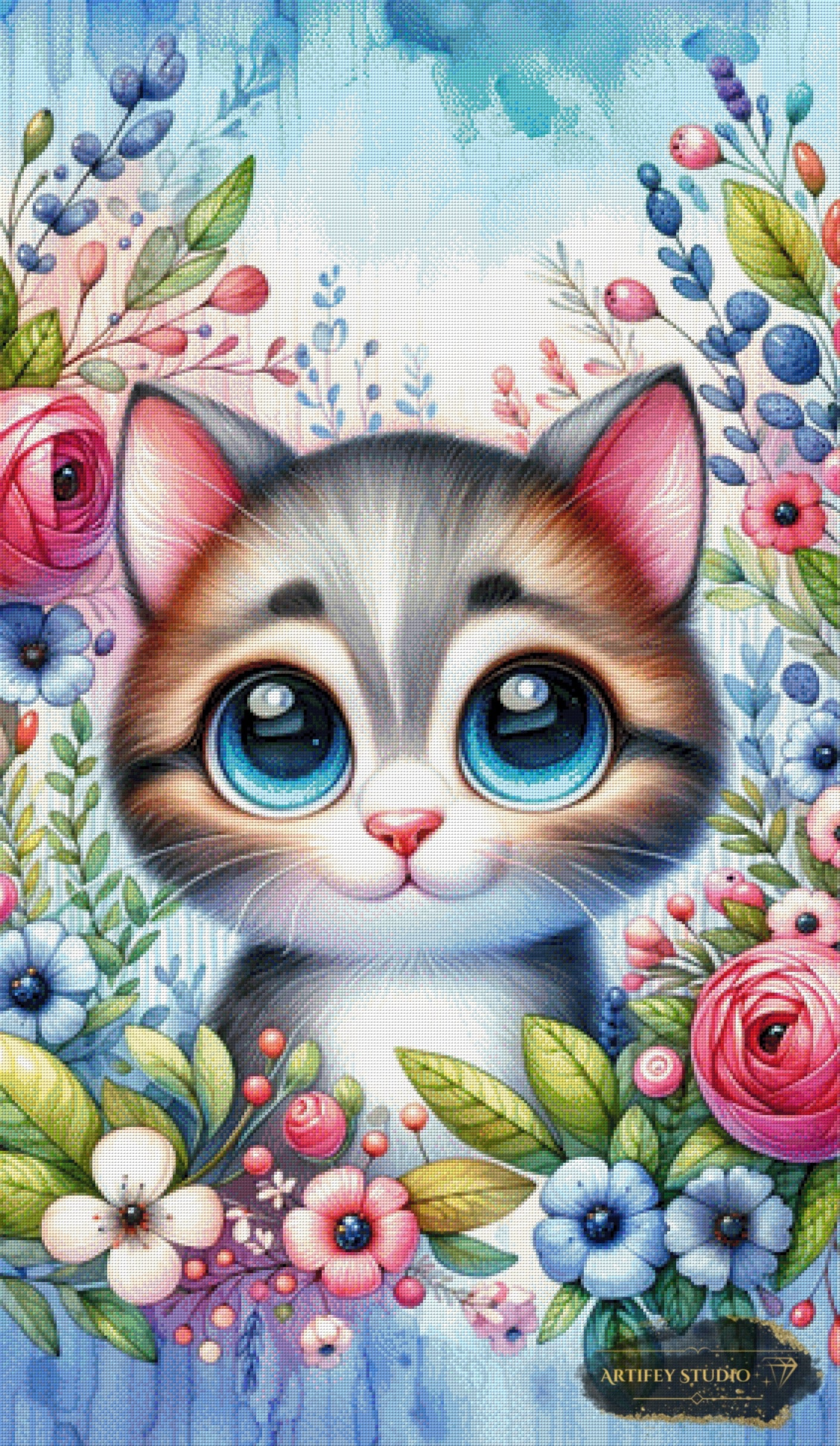 Mit diesem Diamond Painting Set gestaltest du ein detailreiches Kunstwerk in brillanten Farben. Das gezeigte Bild zeigt bereits die fertige, gepixelte Vorlage – so weißt du genau, wie dein Motiv später wirkt.