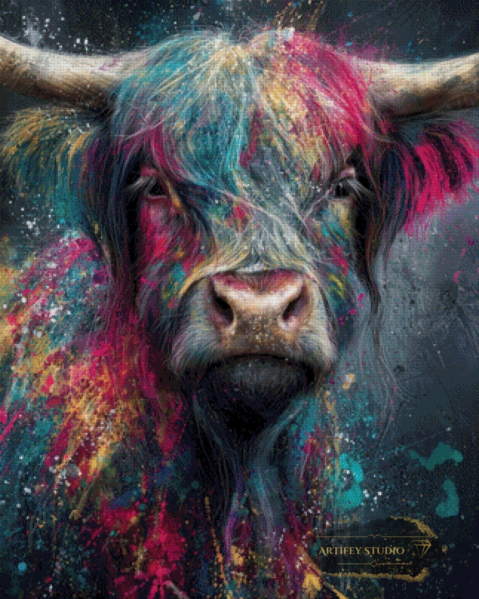 Mit diesem Diamond Painting Set gestaltest du ein detailreiches Kunstwerk in brillanten Farben. Das gezeigte Bild zeigt bereits die fertige, gepixelte Vorlage – so weißt du genau, wie dein Motiv später wirkt.
