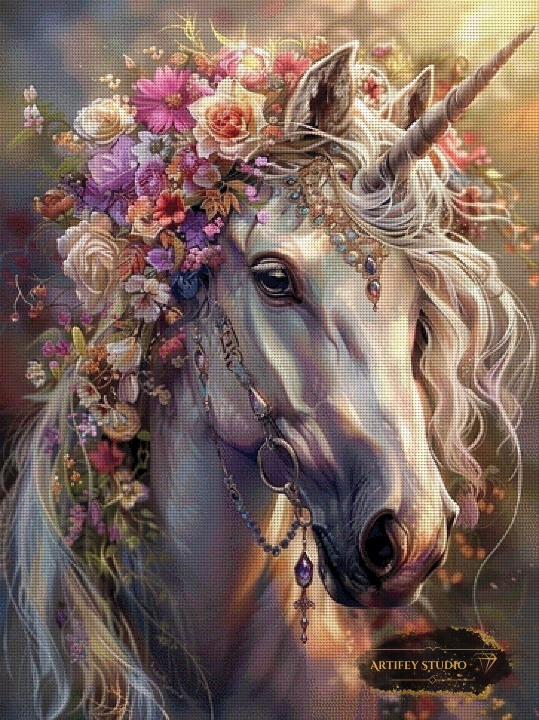 Mit diesem Diamond Painting Set gestaltest du ein detailreiches Kunstwerk in brillanten Farben. Das gezeigte Bild zeigt bereits die fertige, gepixelte Vorlage – so weißt du genau, wie dein Motiv später wirkt.