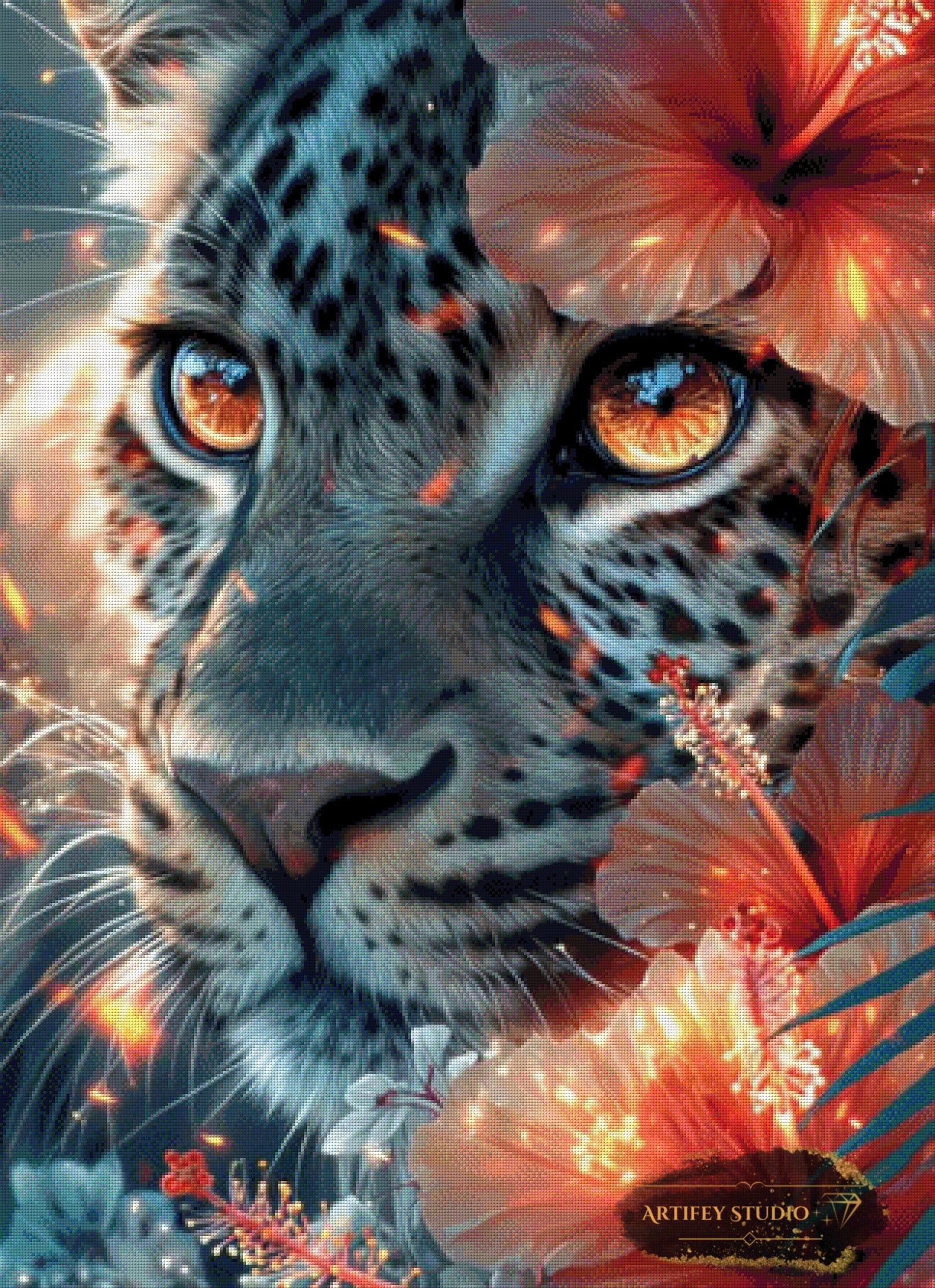 Mit diesem Diamond Painting Set gestaltest du ein detailreiches Kunstwerk in brillanten Farben. Das gezeigte Bild zeigt bereits die fertige, gepixelte Vorlage – so weißt du genau, wie dein Motiv später wirkt.