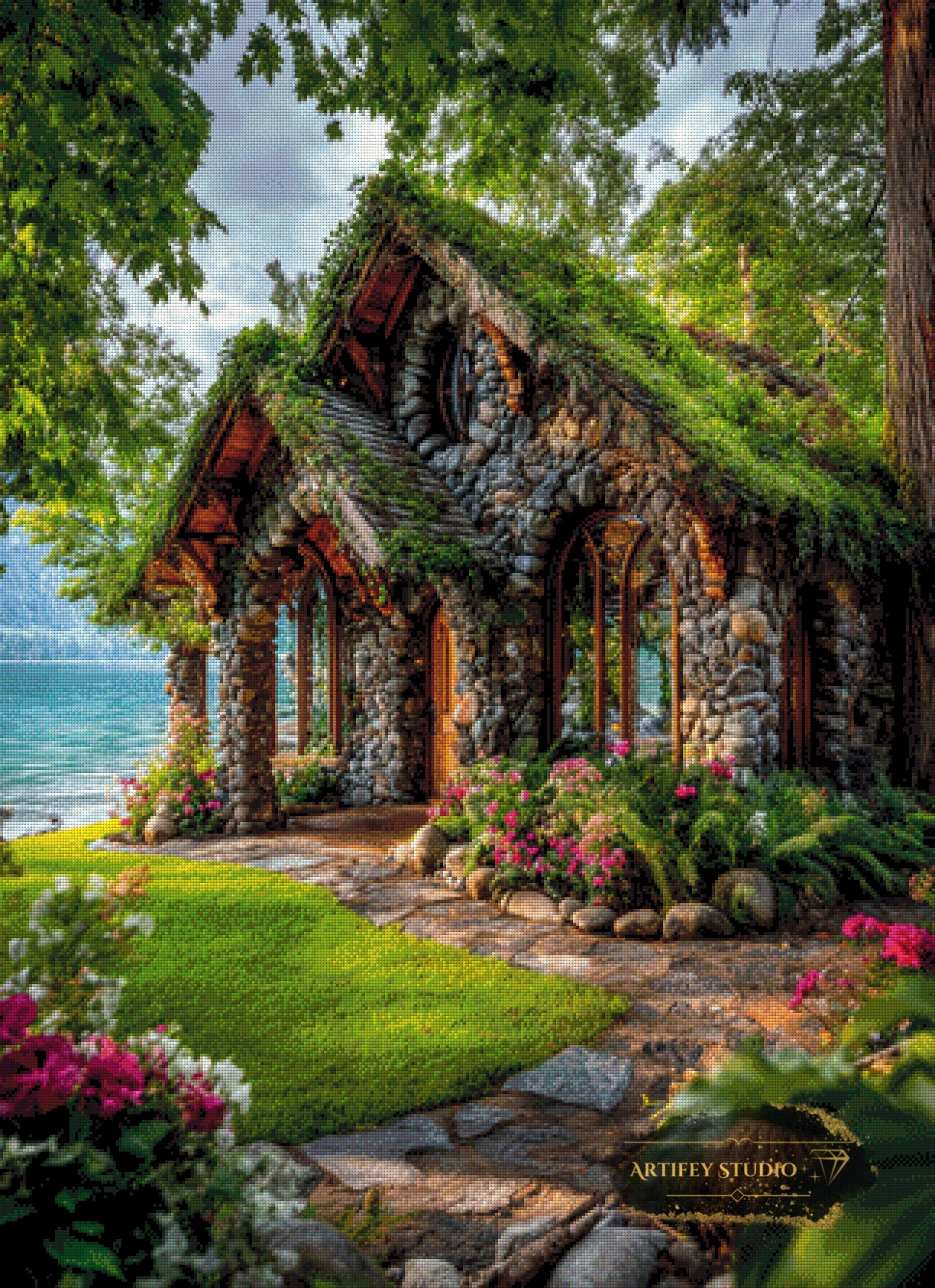 Mit diesem Diamond Painting Set gestaltest du ein detailreiches Kunstwerk in brillanten Farben. Das gezeigte Bild zeigt bereits die fertige, gepixelte Vorlage – so weißt du genau, wie dein Motiv später wirkt.