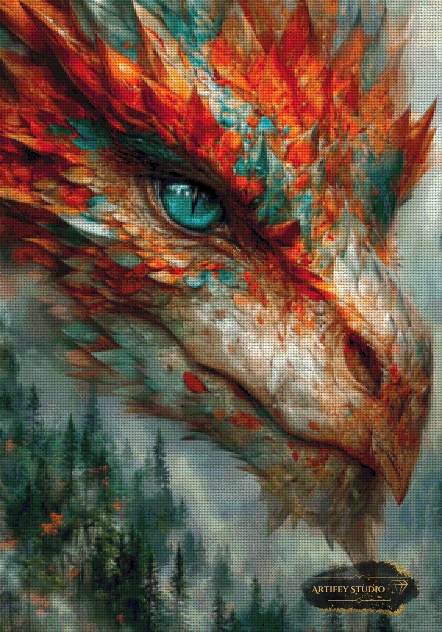 Mit diesem Diamond Painting Set gestaltest du ein detailreiches Kunstwerk in brillanten Farben. Das gezeigte Bild zeigt bereits die fertige, gepixelte Vorlage – so weißt du genau, wie dein Motiv später wirkt.
