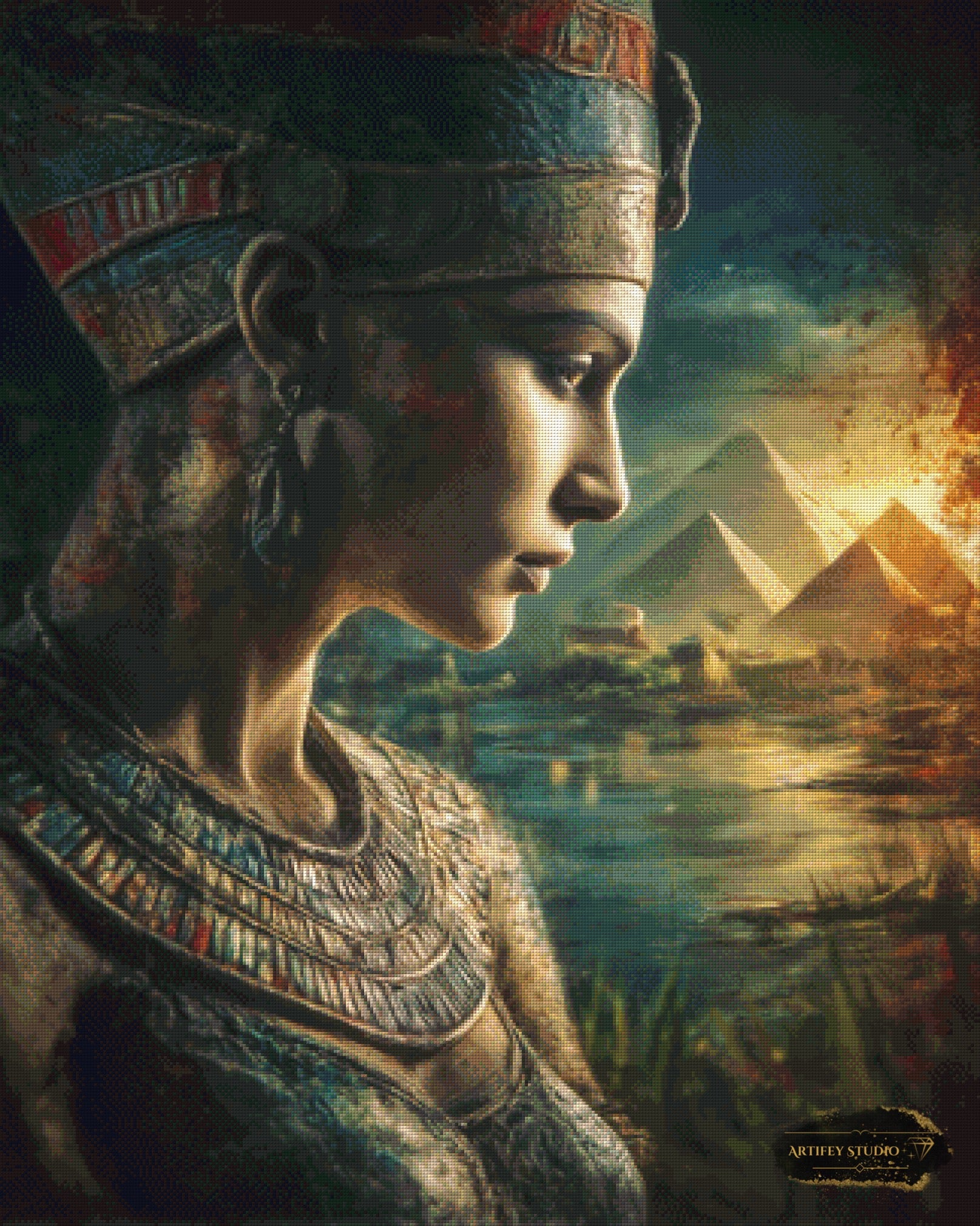 Mit diesem Diamond Painting Set gestaltest du ein detailreiches Kunstwerk in brillanten Farben. Das gezeigte Bild zeigt bereits die fertige, gepixelte Vorlage – so weißt du genau, wie dein Motiv später wirkt.