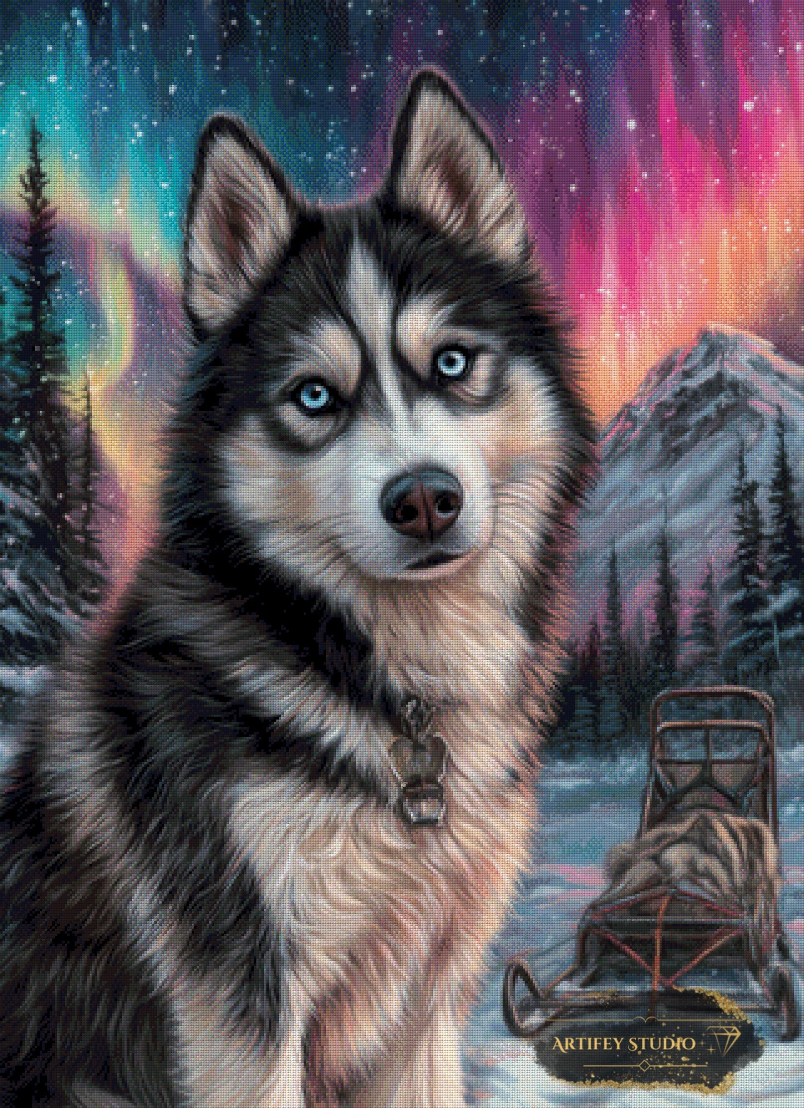 Mit diesem Diamond Painting Set gestaltest du ein detailreiches Kunstwerk in brillanten Farben. Das gezeigte Bild zeigt bereits die fertige, gepixelte Vorlage – so weißt du genau, wie dein Motiv später wirkt.
