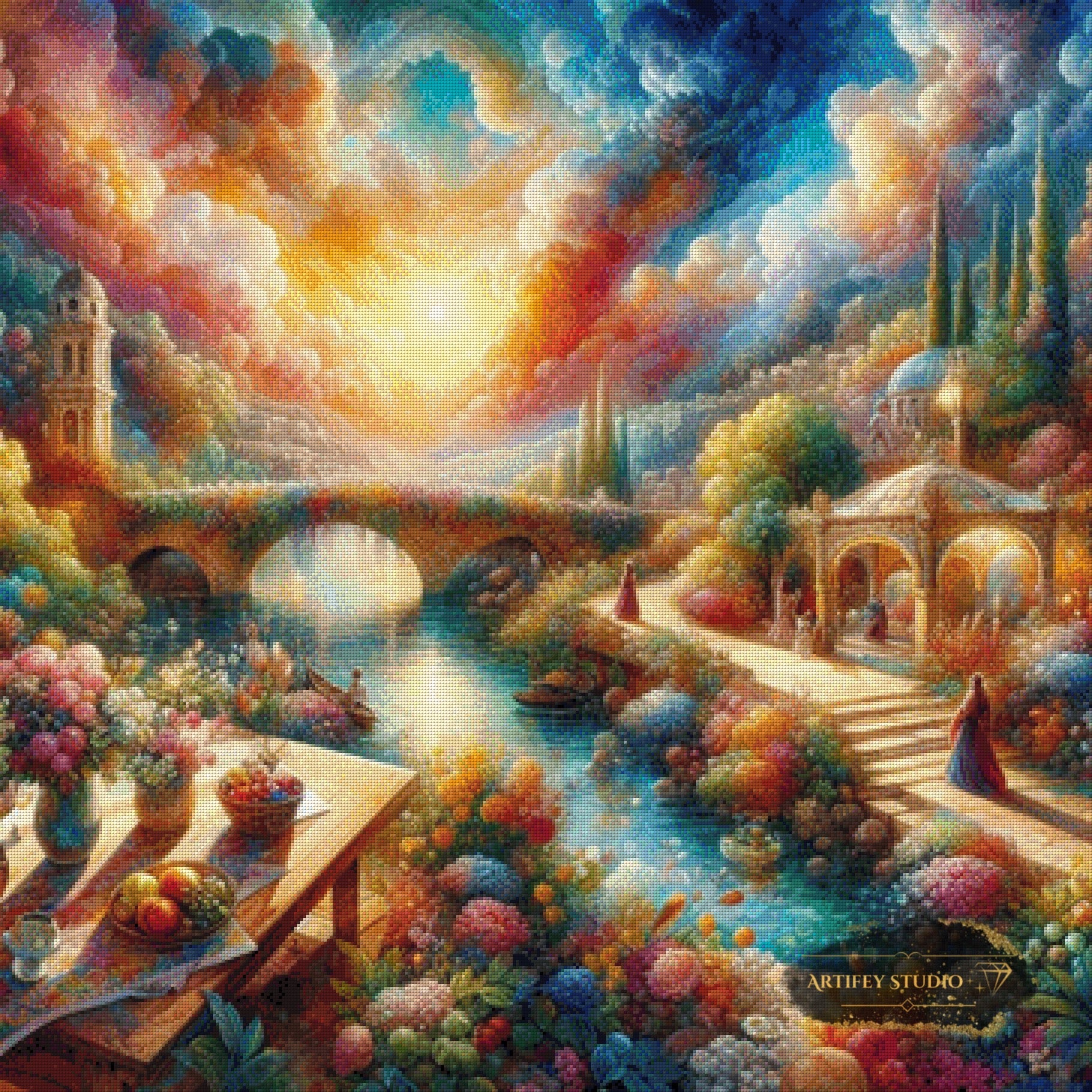 Mit diesem Diamond Painting Set gestaltest du ein detailreiches Kunstwerk in brillanten Farben. Das gezeigte Bild zeigt bereits die fertige, gepixelte Vorlage – so weißt du genau, wie dein Motiv später wirkt.