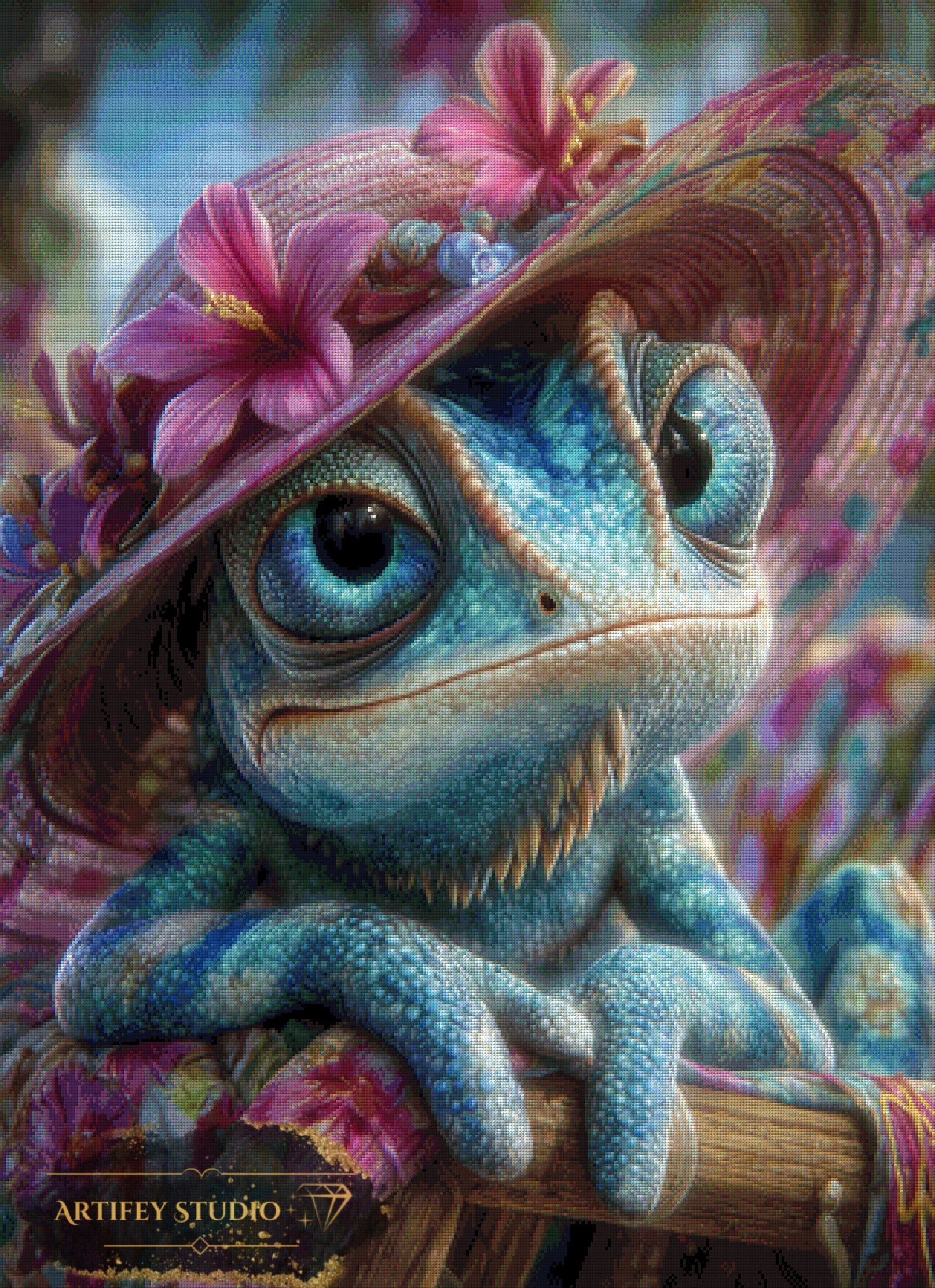 Mit diesem Diamond Painting Set gestaltest du ein detailreiches Kunstwerk in brillanten Farben. Das gezeigte Bild zeigt bereits die fertige, gepixelte Vorlage – so weißt du genau, wie dein Motiv später wirkt.