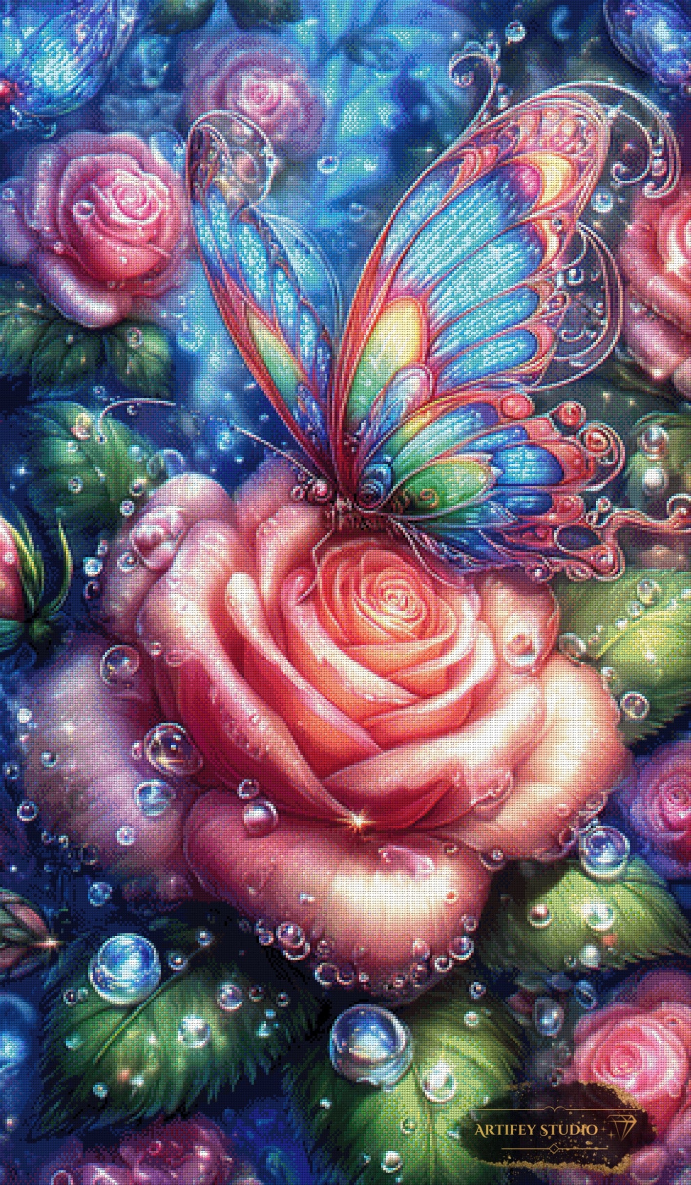 Mit diesem Diamond Painting Set gestaltest du ein detailreiches Kunstwerk in brillanten Farben. Das gezeigte Bild zeigt bereits die fertige, gepixelte Vorlage – so weißt du genau, wie dein Motiv später wirkt.